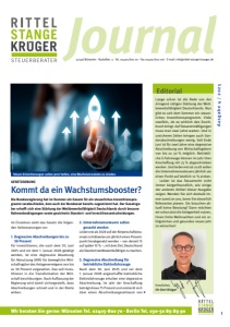 Journal 52146 Würselen · Rudolfstr. 3 · Tel. 02405-800 70 · Fax 02405-800 716 · E-mail: info@rittel-stange-krueger.de Wir beraten Sie gerne: Würselen Tel. 02405-800 70 · Berlin Tel. 030-50 89 89 90 Editorial 1 Herzlichst, Ihr Gert Krüger Lange schon ist die Rede von der dringend nötigen Stärkung der Wettbewerbsfähigkeit Deutschlands. Nun gibt es seit dem Sommer ein steuerliches Investitionsprogramm. Viele zweifeln, ob es wirklich den Durchbruch bringt. Auf Steuerermäßigungen muss man zwei Jahre warten. Und in unsicheren Zeiten bringen auch Sonderabschreibungen wenig. Seit Ende Juni ist für zwei Jahre eine degressive Abschreibung von Wirtschaftsgütern von bis zu 30 % möglich. Betriebliche E-Fahrzeuge können im Jahr ihrer Anschaffung mit 75 % abgeschrieben werden. Und leider erst ab 2028 sollen die Unternehmenssteuern jährlich um einen Punkt auf letztlich 10 % sinken. Leider ist das Steuerrecht nicht immer bürgerfreundlich, wie einige der anderen Artikel dieser Ausgabe zeigen. Wenden Sie sich deshalb immer zuerst an uns, bevor Sie steuerlich Relevantes planen. Sie brauchen aktuell keine Beratung? Dann möchten wir schon jetzt die Gelegenheit nutzen, Ihnen frohe Weihnachten und ein erfolgreiches und gesundes neues Jahr zu wünschen! Ausgabe 4 / 2025 Steuer-Erleichterungen sollen jetzt helfen, eine Wachstumsrakete zu zünden. © @Amorea10 | Adobe Stock Im Einzelnen sieht das Gesetz die folgenden Verbesserungen vor: 1. Degressive Abschreibungen bis zu 30 Prozent Für Investitionen, die nach dem 30. Juni 2025 und vor dem 1. Januar 2028 getätigt werden, ist eine degressive Absetzung für Abnutzung (AfA) für bewegliche Wirtschaftsgüter des Anlagevermögens von bis zu 30 Prozent vorgesehen. Das soll Investitionen in die Transformation der Wirtschaft beschleunigen. Nach Auffassung der Regierung wird damit sichergestellt, dass Abschreibungen schnell und in der Breite wirken. 2. Unternehmenssteuern sollen gesenkt werden Leider erst ab 2028 soll der Körperschaftsteuersatz schrittweise um jährlich einen Prozentpunkt herabgesetzt werden – von derzeit 15 auf später 10 % –, mit dem Ziel, Deutschland als Standort wettbewerbsfähiger zu machen. 3. Degressive Abschreibung für betriebliche Elektrofahrzeuge Nach dem 30. Juni 2025 und vor dem 1. Januar 2028 angeschaffte betriebliche Elektrofahrzeuge erhalten eine degressive Abschreibung. Im Jahr der Anschaffung beträgt diese 75 Prozent und erstreckt sich über einen Abschreibungszeitraum von GESETZGEBUNG Kommt da ein Wachstumsbooster? Die Bundesregierung hat im Sommer ein Gesetz für ein steuerliches Investitionsprogramm verabschiedet, dem auch der Bundesrat bereits zugestimmt hat. Der Gesetzgeber erhofft sich eine Stärkung der Wettbewerbsfähigkeit Deutschlands durch bessere Rahmenbedingungen sowie gesicherte Standort- und Investitionsentscheidungen.